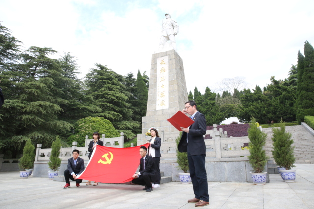 為深切緬懷革命烈士,傳承弘揚(yáng)紅色精神,扎實(shí)開展好黨史學(xué)習(xí)教育,會展公司黨支部聯(lián)合南京市貿(mào)促會第七黨支部和六合區(qū)橫梁街道鐘林村黨總支于4月20日下午前往南京市愛國主義教育基地——桂子山烈士陵園,開展以“學(xué)黨史緬懷先烈,踐初心砥礪前行”為主題的黨日活動。市貿(mào)促會第七黨支部全體黨員、會展公司黨支部全體黨員、入黨積極分子和團(tuán)員以及鐘林村黨總支全體黨員參加了此次活動。