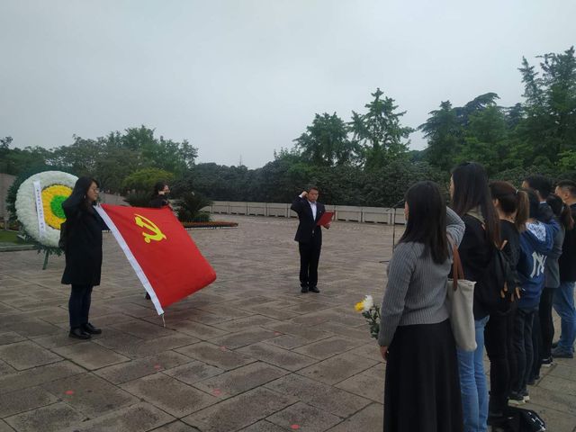 在雨花臺烈士紀(jì)念碑下,全體人員整齊列隊(duì)靜默肅立,鞠躬默哀,表達(dá)對烈士們的崇高敬意和深切悼念之情。黨員們面向黨旗舉起右拳莊嚴(yán)宣誓,重溫入黨誓詞,并集體瞻仰烈士紀(jì)念碑,為英雄烈士們獻(xiàn)上花束表達(dá)敬意。