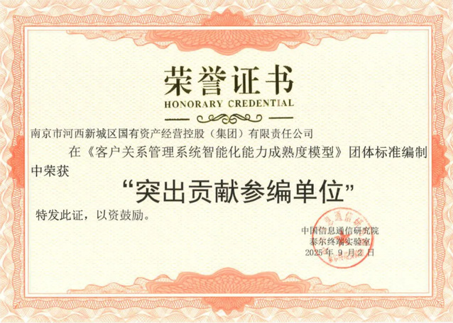 2025年9月,中國信息通信研究院召開《面向企業(yè)用戶的客戶關(guān)系管理系統(tǒng)智能化能力成熟度模型》團(tuán)體標(biāo)準(zhǔn)終審研討會,作為該領(lǐng)域的核心參編單位與重要實(shí)踐者,河西集團(tuán)榮獲“突出貢獻(xiàn)參編單位”。
