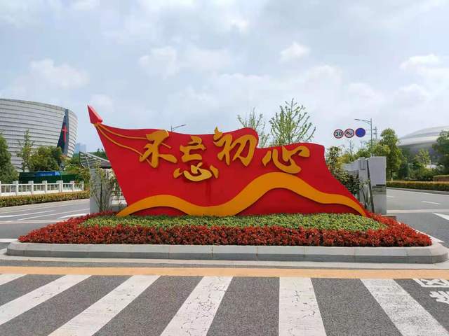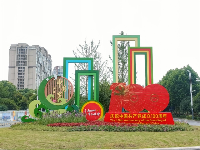 不忘初心來時(shí)路,同心共筑中國夢。位于建鄴區(qū)夢都大街揚(yáng)子江大道路口高7米,占地面積100余平方米的主題景觀,在綠地基礎(chǔ)上突顯了“慶祝中國共產(chǎn)黨成立100周年”活動標(biāo)識等黨建元素;中國傳統(tǒng)紋樣圖案、彩色立體門框的設(shè)計(jì),賦予整件作品立足傳統(tǒng)、開放包容的內(nèi)涵;蛇鞭菊、斑葉芒、彩葉草、夏堇等各式花卉錯落有致的鋪滿地面,烘托了喜迎建黨百年的喜慶氛圍。