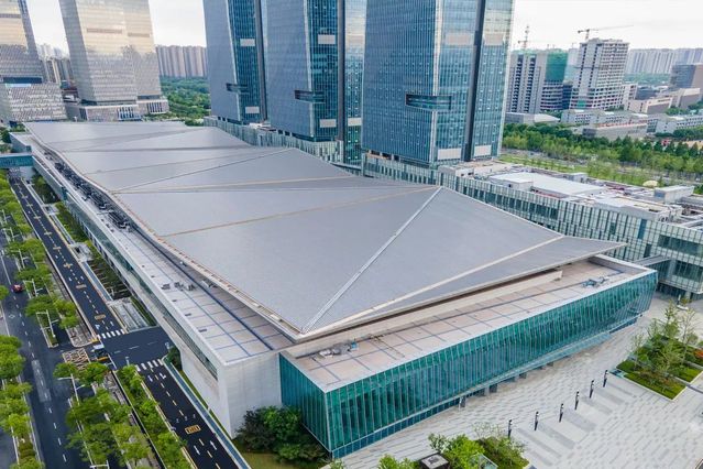 南京國際博覽中心三期1#樓及大地下室工程位于南京河西新城區(qū),北側緊鄰南京國際博覽中心一、二期展館,總建筑面積約21萬㎡,地上2層,建筑面積約7萬㎡,由展廳、商業(yè)、卸貨區(qū)等用房組成;地下2層,建筑面積約14.2萬㎡,為車庫、設備用房等。工程于2017年4月20日開工,2021年2月1日竣工。竣工后,河西集團所屬南京國際博覽中心一、二、三期場館延江東中路連成一片,以華東最大的會展中心展現(xiàn)在世人眼前。
