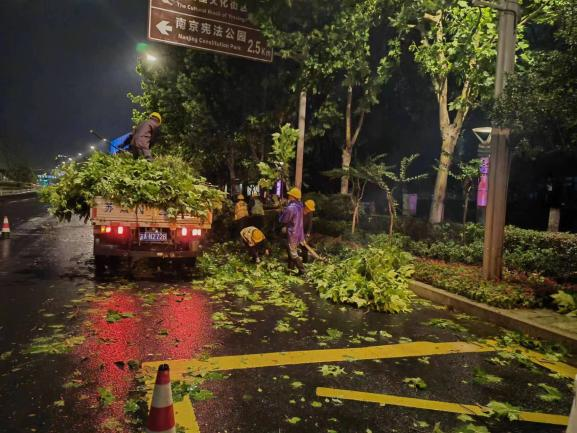 集團園林經(jīng)濟公司作為河西地區(qū)市政道路及綠化管養(yǎng)的主力軍,黨員干部沖在前,全體應急人員奮戰(zhàn)在所轄市政道路綠化項目一線,累計出動巡查消險人員329人次,巡查排險車輛32臺次,搶險范圍包括市政道路、市政水務、道路綠化、公園綠化養(yǎng)護等環(huán)節(jié),共計清理倒伏樹木147株,清理斷枝303處,排除積淹水點15處。