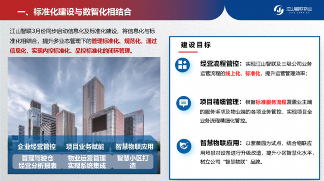 會(huì)上,設(shè)計(jì)成本部匯報(bào)了集團(tuán)各公司標(biāo)準(zhǔn)化工作整體推進(jìn)情況,奧體公司、新城公司、園林公司、青奧城公司、江山智聯(lián)物業(yè)公司、濱江公園公司分別展示了最新的標(biāo)準(zhǔn)化工作成果。各公司標(biāo)準(zhǔn)化的工作緊緊圍繞其主營業(yè)務(wù)展開,貼合自身需求,特色鮮明。