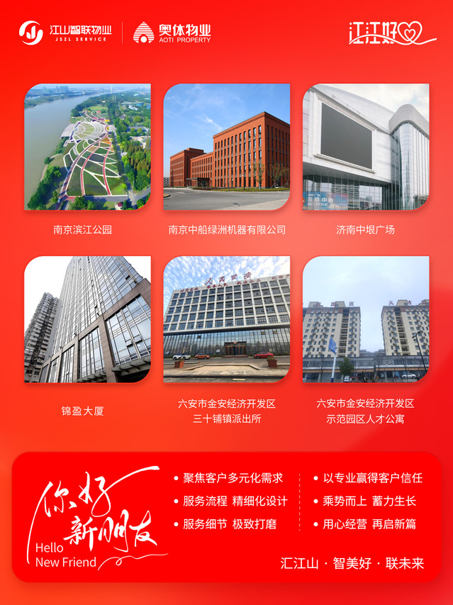 聚焦客戶多元化需求,用專業(yè)贏得客戶信任。江山智聯(lián)物業(yè)將持續(xù)精細化設計服務流程、極致打磨服務細節(jié),乘勢向上、用心經營,新年再啟新篇。
